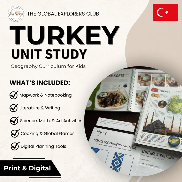 At the Global Explorers Club, we believe geography should feel like an adventure. Our flexible, secular unit studies are designed to spark curiosity, celebrate cultural diversity, and connect children to the world around them. Whether you use every activity or choose a few, our unit studies can be easily adapted for different learners and teaching styles.